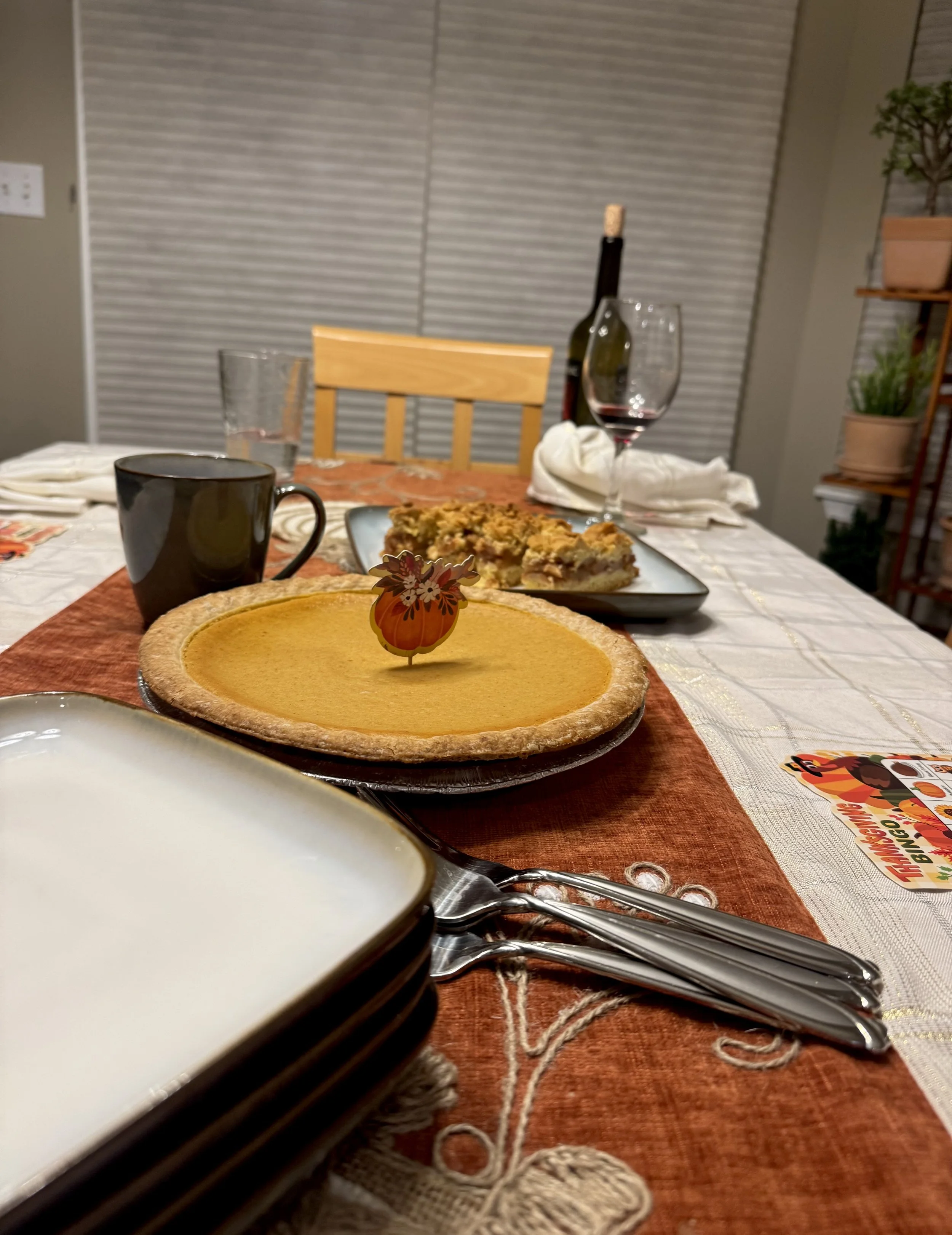 We had a truly lovely evening. A longtime family friend joined us, and the four of us (five including Daisy 🐶🥰) ate until we couldn’t eat anymore. There was wine, coffee, snacks, dessert, Thanksgiving Bingo, storytelling, laughter — just simple, beautiful togetherness.