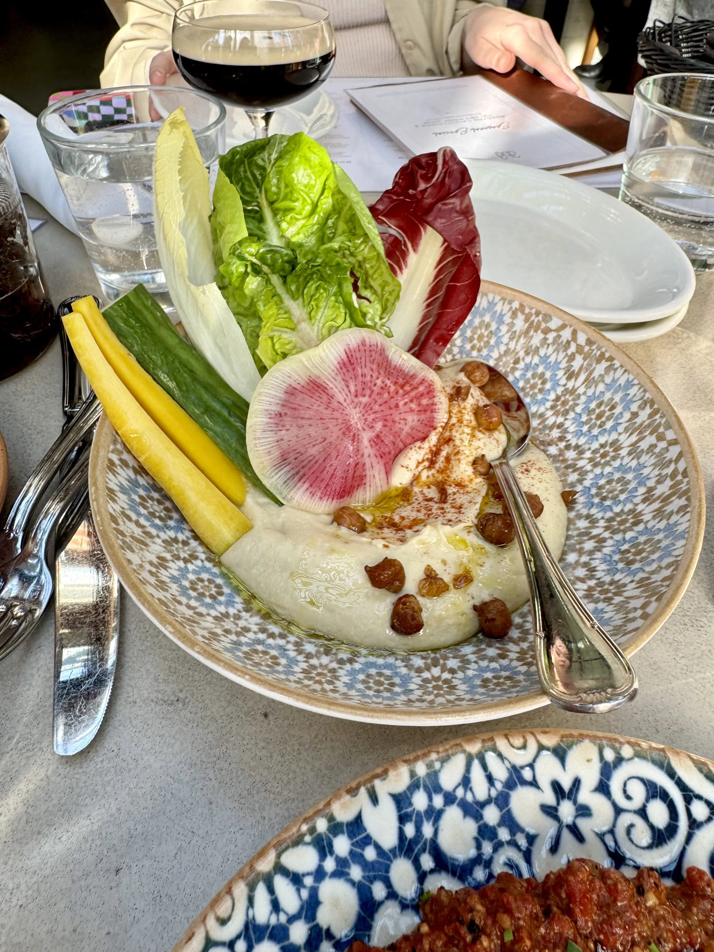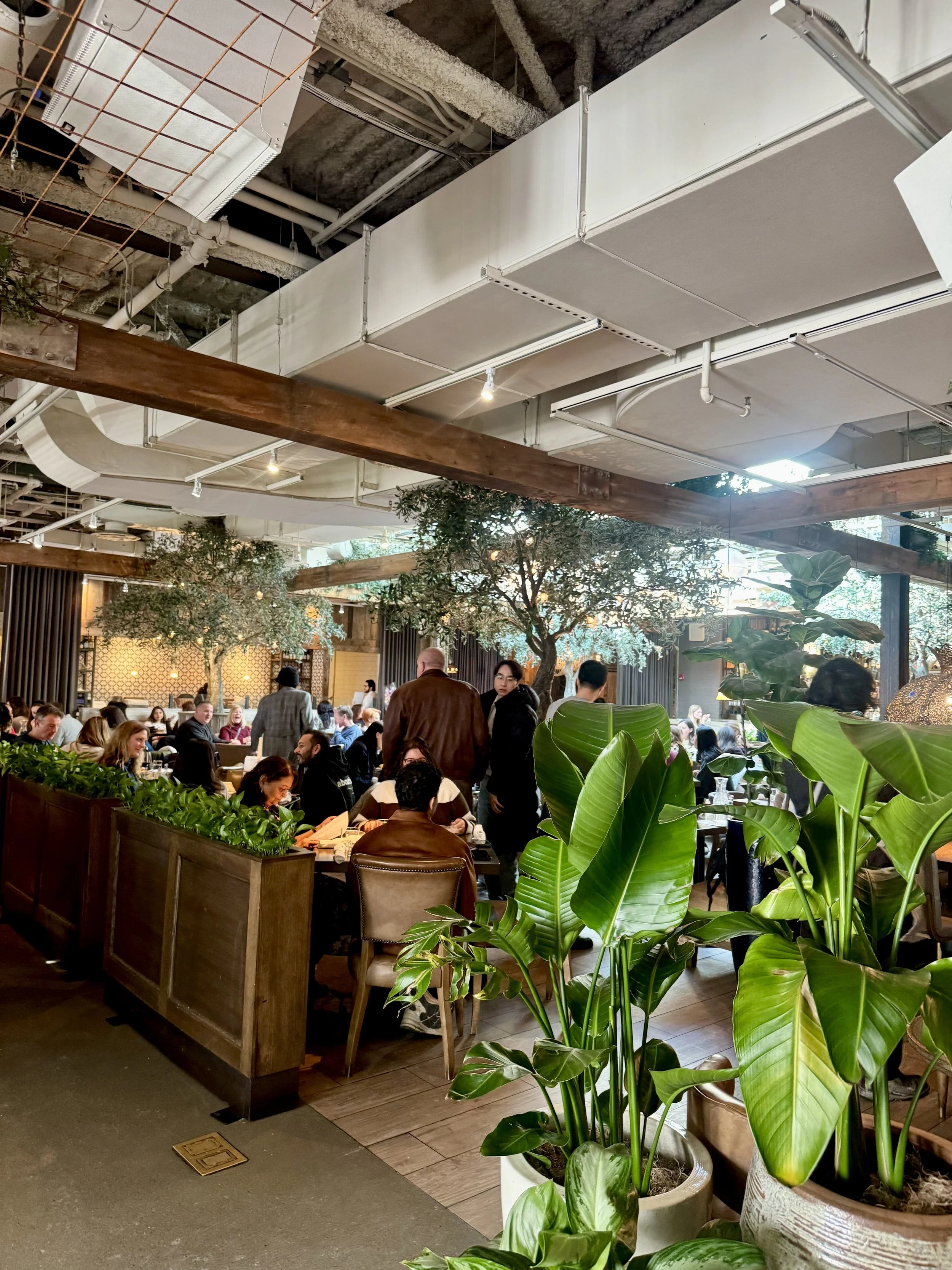 We started with an early dinner at Aba, a modern Mediterranean restaurant in Chicago’s Fulton Market district, inspired by the flavors of Israel, Lebanon, Turkey, and Greece. The vibe is bright, airy, and effortlessly chic—lush greenery, whitewashed wood, soft lighting, and a calm, coastal feel that makes you forget you’re in the middle of the city. Such a lovely spot.