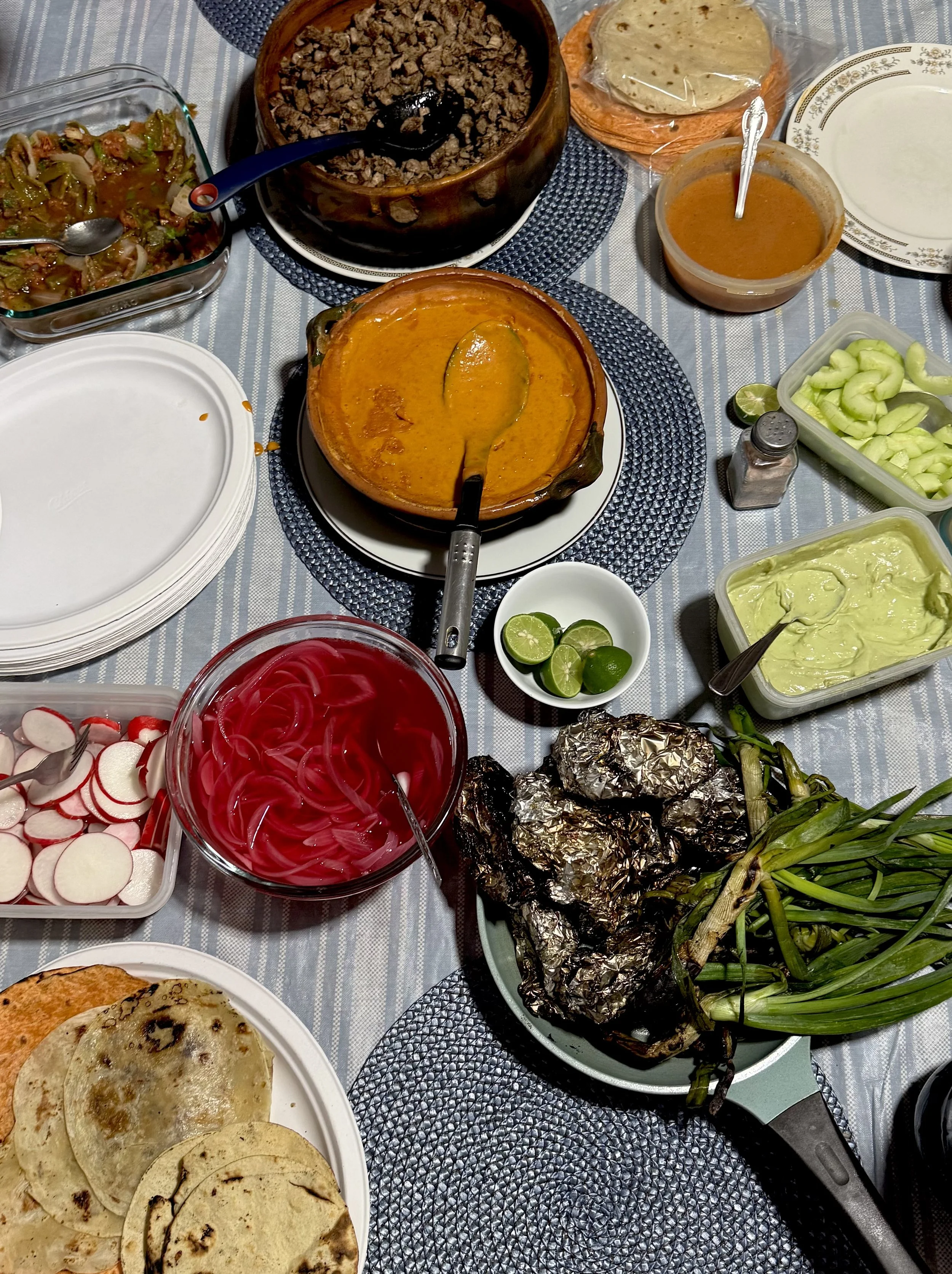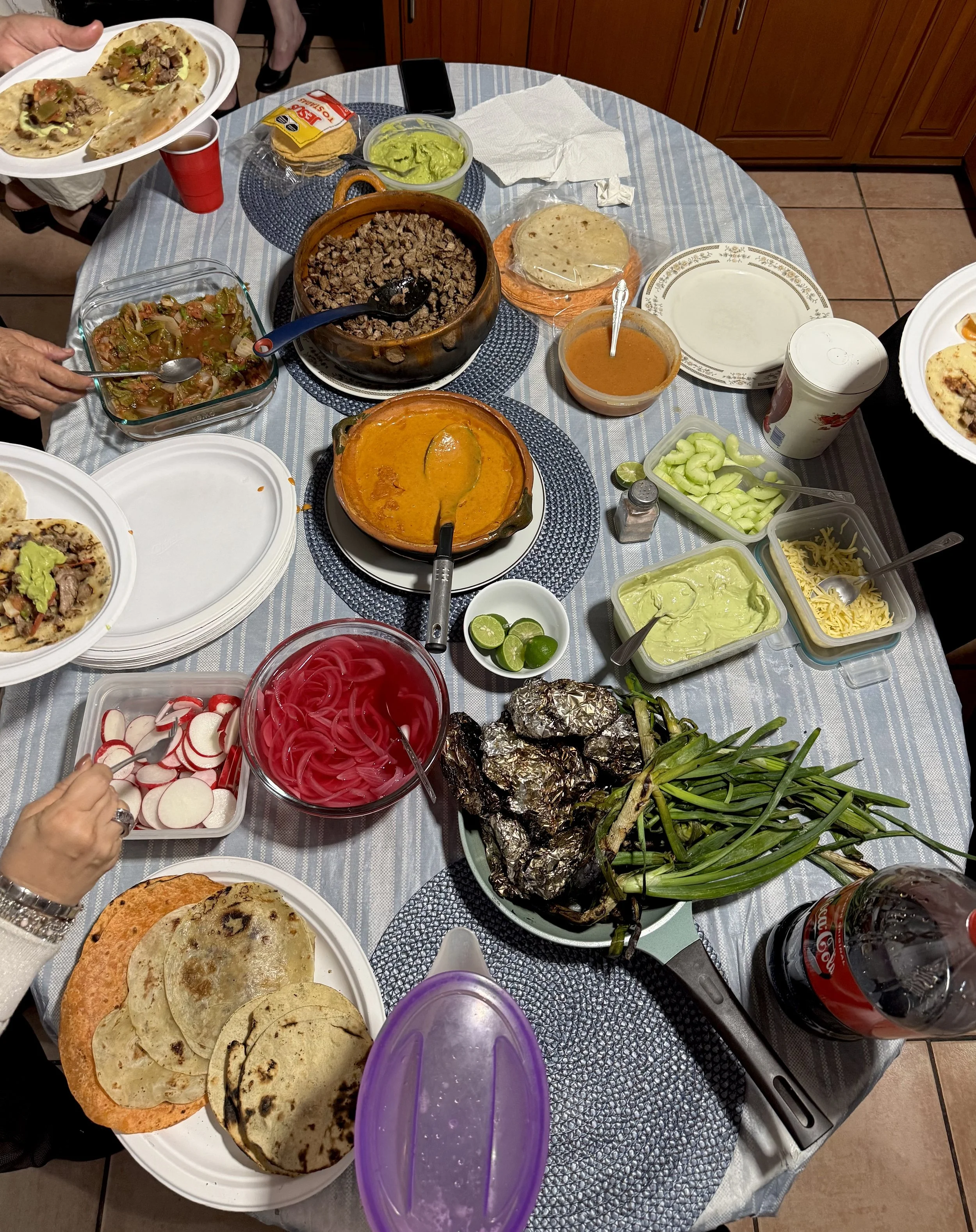 She requested a simple birthday cookout: grilled steak tacos with all the fixings. My brother, the grill master, took charge of the meat, and I helped with everything else. The food was incredible—the steak cooked to perfection, the refried beans made by my mom’s cousin rich and comforting, and my aunt’s salsas absolutely delicious. And of course, my mom had not one, but two cakes—both amazing.