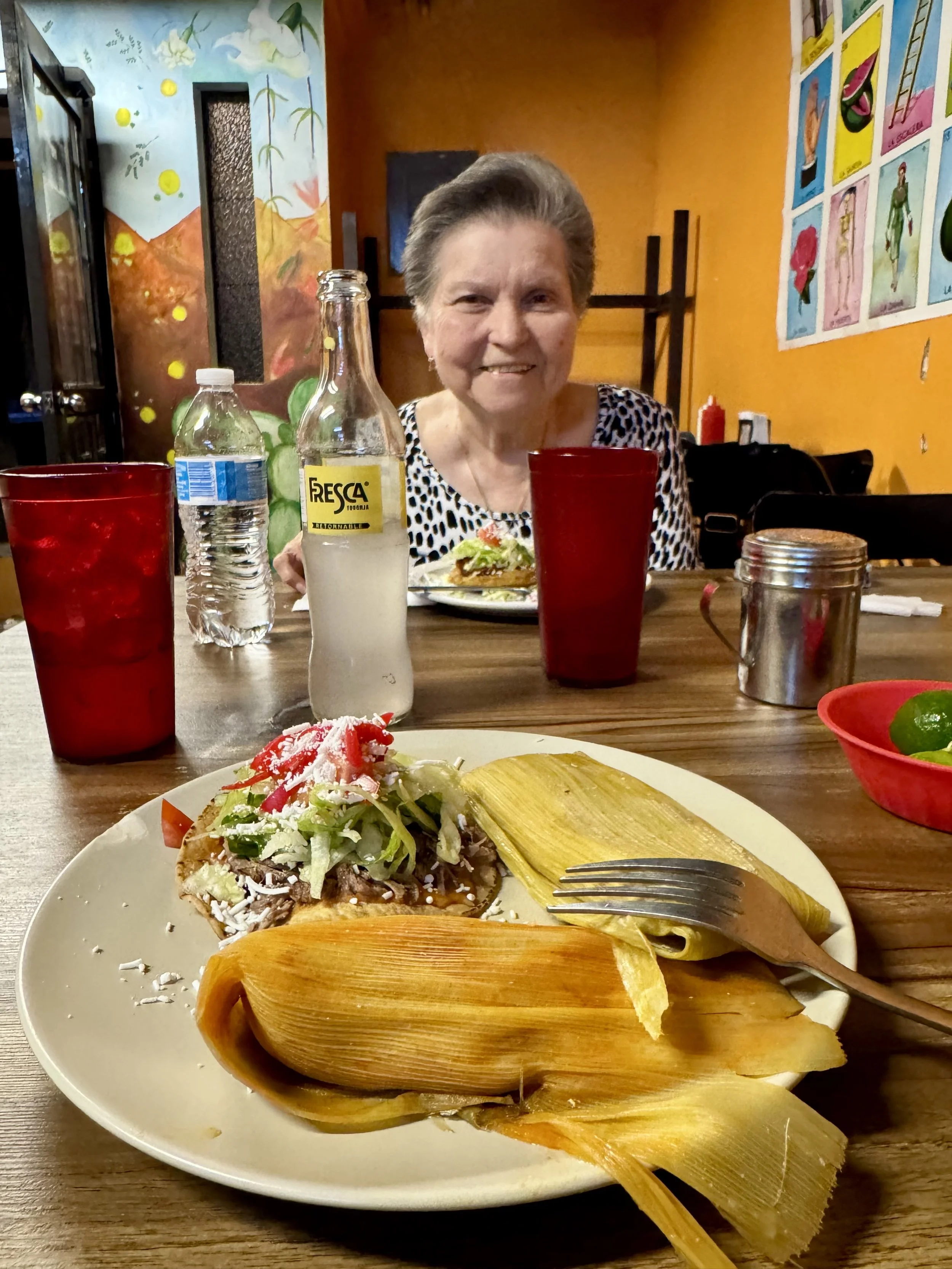 My mom was craving authentic Mexican food, so we went to a popular local spot. We had tamales, tostadas, and hard-shell tacos—so delicious!