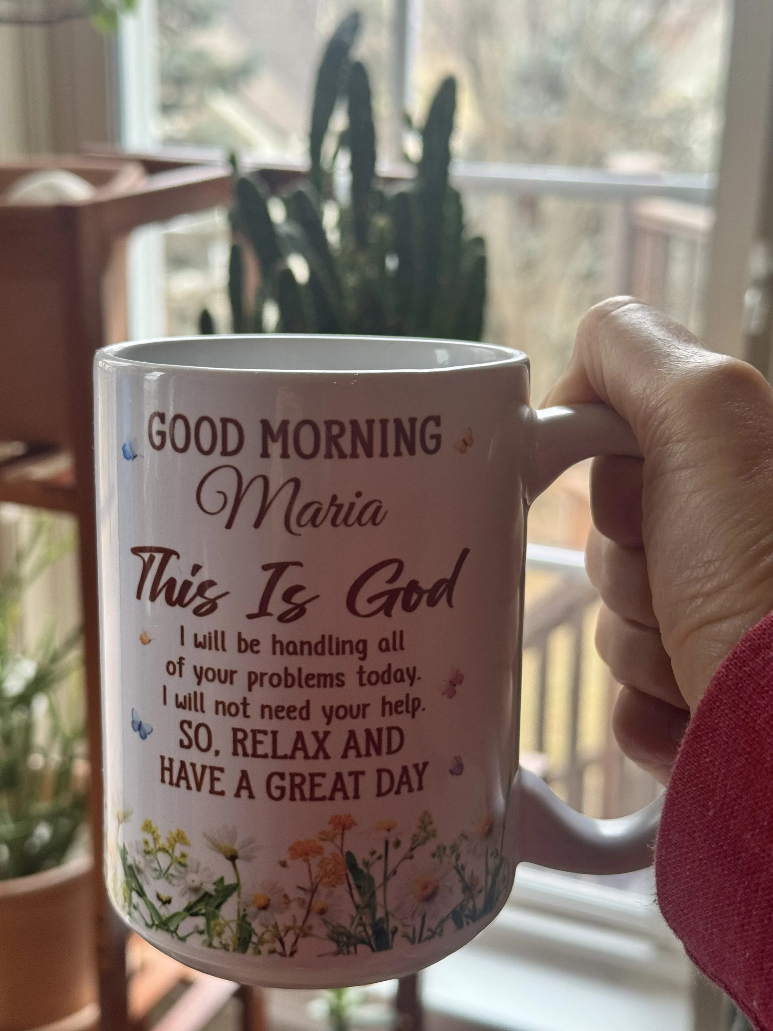 “Good morning, Maria. This is God. I will be handling all of your problems today. I will not need your help. So relax and have a great day.”